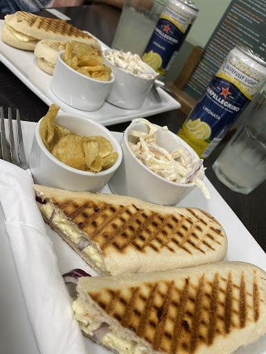 I was with a friend for a catch up and we were both really hungry by the time we ordered, so we weβre grateful to see plenty of comforting filling food on the lunch menu! We both went for the Lancashire Cheese and Red Onion Panini, which was served with a tasty Homemade Creamy Coleslaw and some Kettle Chips. We had a San Pellegrino Lemon drink to help us cool down after shopping, and also a Chai Latte and a Cappuccino!