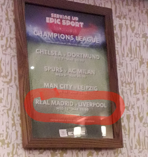 Last night we were in this pub to watch Real Madrid v Liverpool. We were a party 5 people. All good, apart from Liverpool losing the game, until the final whistle when the pub manageress turned the TV's volume off. It was so quick that the referee still had the whistle in his mouth. This is the third time that this has happened. On the last three games that we watched there, the manageress took the same action. So, we requested the manageress to turn the volume back, but "groundhog day"... the manageress gave the same answer as she did on the previous two games. The response is that people is asking for music. It is a very strange reply as the games are in the middle of the week and at the least 80% of the customers, including dinners, are there to watch the game and this is very clear by the reaction of the people during the game and comparing any other nights from Monday - Thursday, when there is no games, so the pub is basically empty. When people go to a pub to watch a football game or a sport event, we expect to see the commentaries and interviews after the final whistle. It is very annoying as we are still drinking and spending our money in the pub. It is also very unprofessional from the manageress, when asked to turn the volume back, being abrupt when replying to our request. We note that there are posters on the walls around the pub inviting people to watch football games in there, but there is no warning about turning the TV sound off right at the final whistle. What is very shocking is that the manageress was misleading us about people/customers asking for music. On one of the previous occasions that this happened, after requesting the manageress to turn on the volume back and the reply was that people wants to listen to music, she left for the night. So, we asked one of the bartenders to turn the volume on, the bartender kindly did and there were no further issues with people asking for music. Perhaps, proper warning should be giving to customers, who then can have the option and make a decision whether to watch the game in another local pub, like The Valentine, where we will definitely be going to watch the next Liverpool game..... Please Blue Anchor (owner), do not waste your time in replying to...