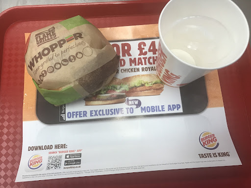 First time visit today...disapointed on many levels...only 2 staff on tills, with a long queue. Reading reviews this has been a common issue. Order was wrong ....twice...by the time hubbys order was sorted my meal had cooled somewhat but still edible..we were not the only ones who returned their orders. At first glance the lady who was cleaning appeared very conscientious...clearing and wiping tables continuously on the go. But as I sat down and waited for hubby to join me , I watched her closely,I was going to complement her....however..she used the same blue cloth to wipe all the tables, no issue there maybe but she then cleaned toilets, bins and counter with said cloth. She emptied bin, blew her nose on a tissue all without her hands seeing any soap. I noticed a member of staff come on duty...enter through door to left of counter...put a cap on and proceeded to cooking area..again I saw no evidence of hand hygiene. I have worked in many areas and I have used different colour washclothes for specific areas.. ..surely a company like BK would have a universal system in place. The meal was left...