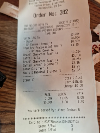 Read moreDo not order via uber eats from Aintree Costa. Horrible service on part of restaurant. I've ordered twice and had items missing from my order on both occasions. Each time the poor couriers have not been given any information about items which may be missing from order. Telephoned store on first occasion to be told by a very rude girl that 'that item is out of stock and it's not my problem that uber doesnt give us your contact details'. Surely it's possible to offer an alternative for items paid for that arent in stock? Items promptly refunded by uber and delivery drivers lovely and apologetic for things beyond their control. Uber eats offer of free item with orders over £10 also missing in delivery on...