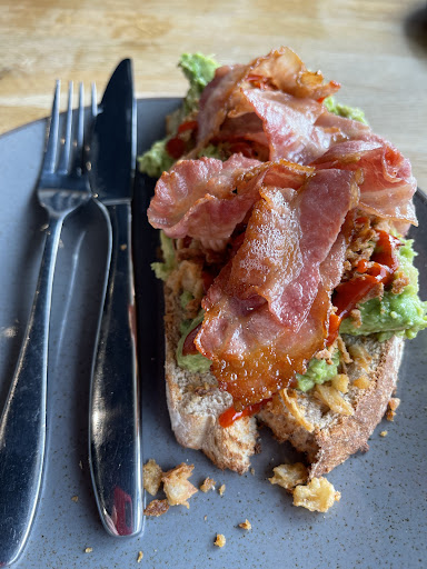 This prime spot, is a place I have watched change direction and grow over the last number of years. I knew of the lads, going back when they had a small Coffee Roastery in a small business estate in Litherland. Back then they were providing a small Coffee Takeaway, that was making its mark, but their central focus was providing roasted coffee beans in different shifts and flavours and making their own statement. I have been to their newish, ever changing spot in Crosby, popping in now and again, for that classic cup, however on Sunday it was a totally different experience. I arrived to an expanded premises, busy with a nice flow of customers, newly decorated from my eye, instantly leaving a very positive impression. I took the next step outside of coffee and added some grub as well. Smashed Avocado on toasted Rye, crispy onions, smoked bacon with a smidge of Sriracha sauce with that integral kick and Wow…the best I have ever eaten. The combination was simply outstanding and left a lasting impression on my palette. I will be back for this delight on a more regular basis. It’s simply the type of light lunch food I love. My Latte was as always, well up their in my opinion, made with care and attention, lightly frothy with Crosby Coffees impacting signature. I had to add a sweetness of Chocolate and Strawberry slice just to finalise and I was not disappointed. All in all, the work, effort and dedication these guys have invested and watch build is a complete credit to their love and passion for quality and goodness. Keep up that fabulous drive, wishing the best in all...