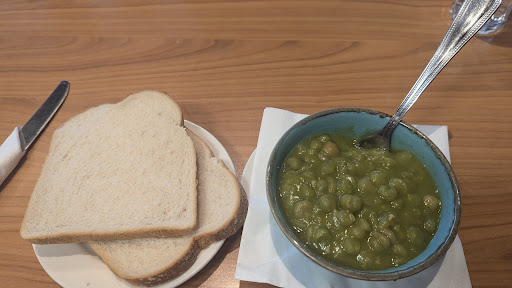 After much discussion, mushy peas were the only item they were willing to classify as vegan and willing to serve that to me. Then they said that if we are to dine in, we have to place the order at the table, so our wait in line had been wasted time.