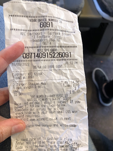 Yep, I am no longer a KFC virgin and I'm pleased that it was given to the Southport branch. The girl on the counter serving was obviously well briefed as when I added chips to my order (which at that point consisted of your vegan burger and tea) she immediately warned me that they can't be guaranteed to be vegan due to the cooking method used. I could have said that doesn't matter as I already appreciate that when I get my chips from the chippie, they have been cooked in the same oil as fish and sausage. It did however give the the opportunity to try something else on this brand new menu to be so I opted for corn on the cob. Generally I'm not usually a huge fan of quorn fillets as I tend to find them a bit dry to my taste but this fillet was moist and broke apart well in my mouth. The seasoning was well spiced and the outlet although busy had a very calm feeling to it. The corn on the cob was new to me in a fast food restaurant context but was very tasty. I will always remember my first time and for that...