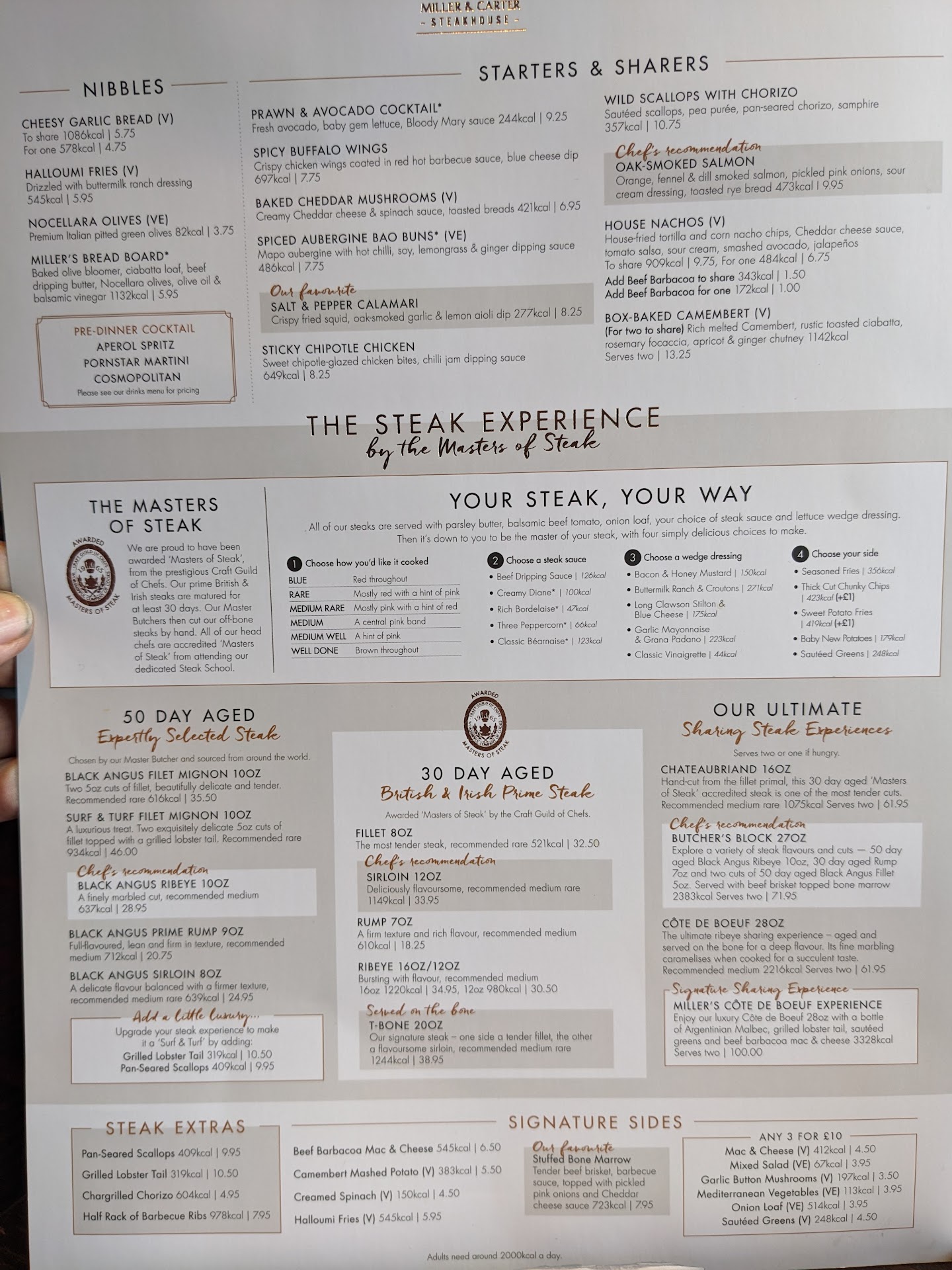 Read moreMany of my friends try restaurants including me. We love food. So far on several attempts we have yet to have good food in this Miller and Carter. Very overpriced. Expect to pay at least £50 each. Now dont get me wrong they do have deals for around £25 but by the time you get starters and get drinks it get expensive quick. One friend had fillet steak. Tough as boots! Asked for rare got very well done. Took 45 mins to arrive. Then he tried to complain by time manager czme. He said maybe we could do another but took so long his party had finished mains and were halfway through dessert. My friend is a professional chef. He said no they still charged him for meal he didn't eat! Second friend had lunch. Third friend went 4 steaks and drinks. For him and family. They don't do desserts. Total bill 4 steaks drinks over £300. Super slow service. Had cheek to want a tip!! I've been in myself. Place been renovated since it was carvery. Still not that high end. Most people in there are drinking not eating. I go past often. Often very empty. Some nights super busy. Been in wasn't treated that good. Menu took so long coming I got up and got one myself. In end gave up waiting. Didn't even get a drink. Was offered a free drink. For 2 of us. Only coffee so I declined. I didn't book. And others booked under there names. Just wanted to leave a real review. And its based on both my and friends...
