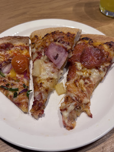Even though the pizzas were in the heater, they were stone cold. Later, they replaced the pizzas with freshly baked ones. Pizzas are very basic qualities, donāt expect much! Plain, tasteless pizza slices. Shameā¦as the service was so great š