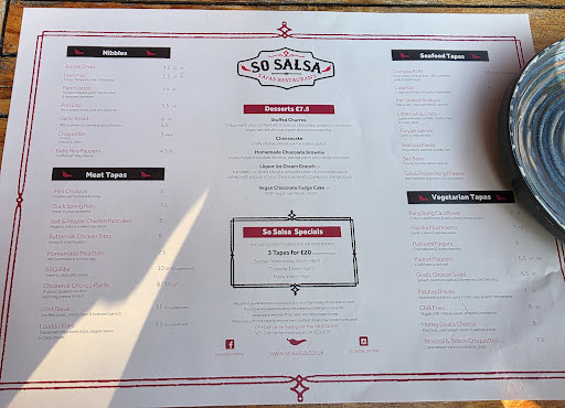 It's small but tables are nicely spaced out. Menu has a very good selection of different tapas that are all well priced. Having been to So Salsa twice before, once here and once at the new place in town, we know our favourites.