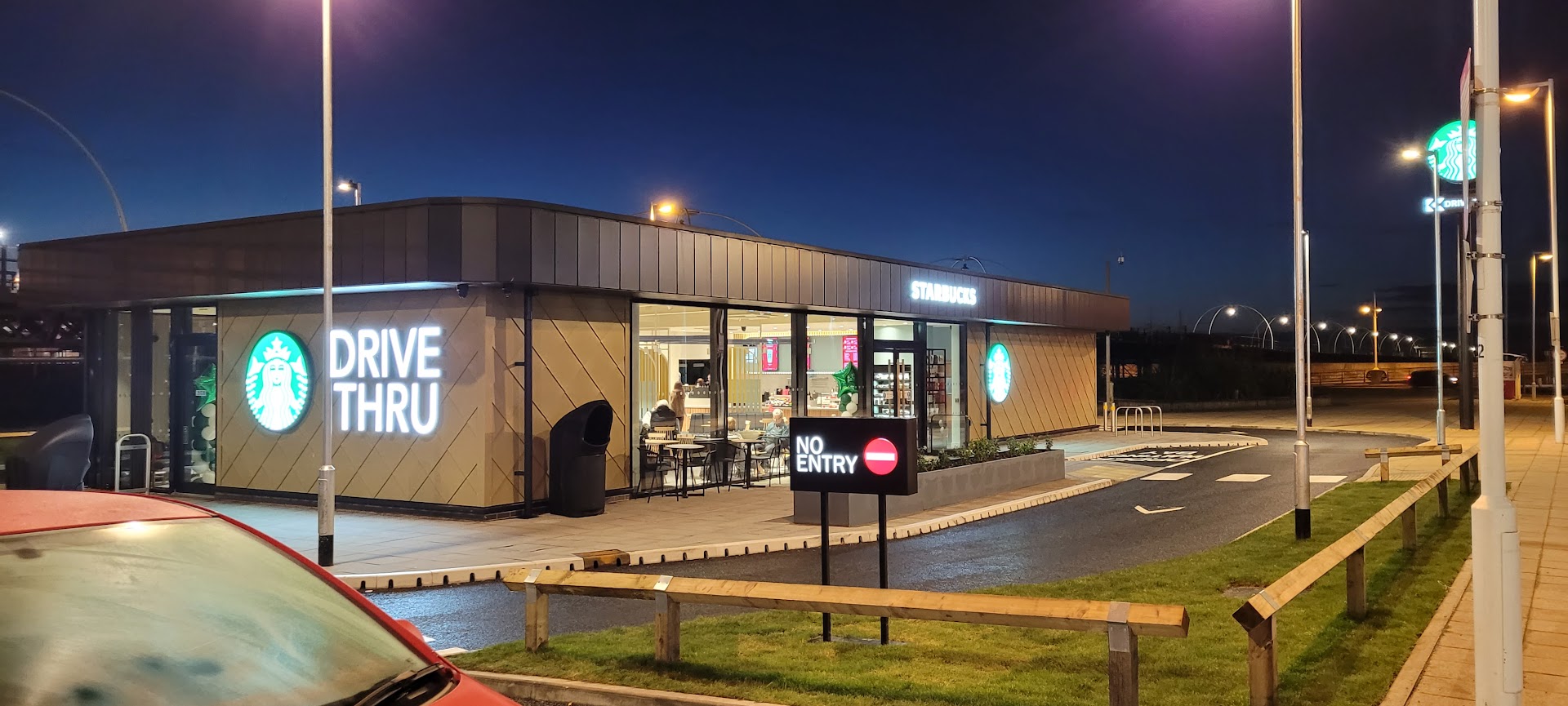 On my second visit to this store, it felt like entering a war zone! The staff were miserable and hostile, refusing to take drink orders for customers sitting outside. I ordered a £3.55 latte, but the Starbucks employee put through something else—a chocolate and caramel latte for £4.20. They were really miserable there, with no thanks or acknowledgment when handing over the drink. Drinks were almost being flung at customers. What a terrible coffee shop this Starbucks has become! I personally suggest a complete overhaul, with better-trained, customer-friendly staff who love their job instead of this bunch!