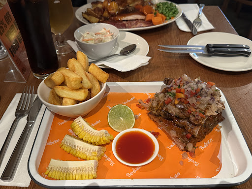 Lovely seeing our waitress Ruth who has served us many a time before but that's about where the good things stop. When we were ordering the food we were warned there were no flatbread for starters and no broccoli on the sides. We proceeded to order accordingly so we wouldn't be missing items off our meals, we have ordered a 12oz fillet steak that was meant to come with cheddar and onion brioche bread, a 16oz t-bone steak which was meant to come with the brioche bread, and 2 lots of the beer battered haddock. The meals came out and the haddock and chips wasn't too bad, however the t-bone steak was stone cold and there was no brioche bread with either of the steaks. When the t-bone steak was sent back due to the coldness of it, it came back and had the texture of boot leather and had seemingly been microwaved. If we knew there was no brioche bread we wouldn't have ordered the steaks as they were expensive for what had actually come out. When we asked to speak to the duty manager we were told he would only be a few minutes as he was working the door which is reasonable but we noticed him walking about the restaurant, one of us had to approach him to be able to speak to him. He took the t-bone steak off the bill and apologised over the lack of information over the brioche bread which we think was unacceptable as we had essentially been served what was on the basic part of the steak menu and been charged for the special steaks. One of us even went home hungry because of the state of the t-bone steak and it had put us off ordering anything else. Don't think we will be returning as this is the second visit here that has consecutively been terrible. (Other visit...
