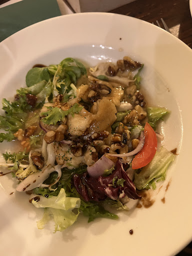Goats cheese bruschetta with caramalised onion and balsamic dressing (v) Halloumi and walnut salad (gf)
