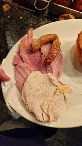 The meat and Yorkshire puddings on the roast were nice, but the rest of it was not. Everything tasted stale, as though it had been sitting under the heat lamps for some time.
