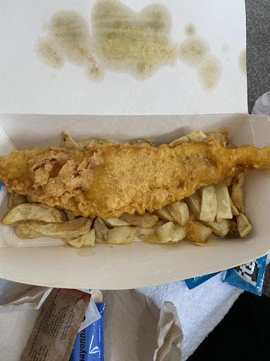 Read moreProbably would say worst fish and chips I tasted , thought it was a good place due to the business. However it was awful ordered a kids meal and a cod and chips the chips were old the cod was old , the batter was soggy and didn’t stick to fish (thank god) as I didn’t want soggy batter on top of that the cod was rubbery and clearly old ( see my photo). The bit I’m upset about is it’s a seaside town with high prices on the fish and chips and it’s not even a fresh piece of cod finally the fish finger the oil needs changing as it was dark brown . After the food I’d rate the cleanliness as a 2 they were clearly wiping down tables however I didn’t see them wipe down those surfaces that they were working on nor did I see any hair nets and one member of staff kept pulling up is his top wiping his swetty face and then boxing food I would completely avoid unless you want food poisoning or digestion problems due to the high level of oil retained...