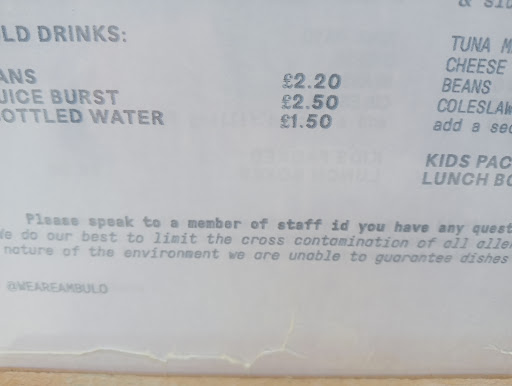Unfortunately the menu is extremely limited. 3 years ago they used to have huge salad bowls and a lot of variety. Now you will only find very basic sandwiches and sausage rolls. If you have any allergies or dietary requirements, I would avoid going there. Two members of staff were not able to explain what was in a sandwich. They stated that they had no vegan options which is a bit mystifying as they serve chips. It was not safe for me to eat here. I do get that no shop is obliged to offer options but not being clear whether or not something on your menu has lactose is frankly concerning for health and safety standards.