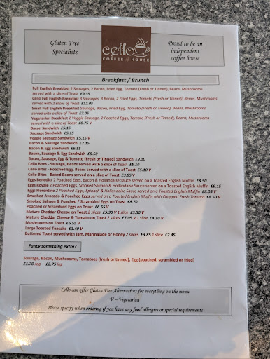 We came here especially after finding out about Cello on Facebook, and it was absolutely worth the trip!â¤ď¸ For a coeliac, this place is heaven, and I brought my 10 year old and my husband who are non-gluten free and they also loved it. Lots of offer and it's been the first time in a long time that I've been spoiled for choice!đ Loads of cakes on offer and they give you the option to take them away with you too. I had a full English which was amazing followed by a huge slice of chocolate cake which was gorgeous!đ I made the mistake of not having enough room to finish it though! đ There were so many amazing bakes on offer I took a couple home with me to try. If you're coeliac or gluten free this place is a must try, lovely staff members and nothing was a bother, just so nice to feel normality for a change when eating...