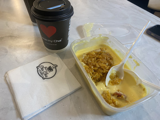 Read moreShocking! That’s one way to describe this place. You pay a premium price for what professes to also be an eat in establishment, only to be served in a really poor plastic takeaway container with cheap disposable plastic spoons. We ordered a corn flake tart and two desi teas. The cheap plastic spoons were snapping as we tried to eat the cornflake tart. I asked for a proper spoon, only to be told they don’t have any. When I asked to speak to the manager, he brought a couple of metal spoons and told us the staff didn’t know where the spoons are kept. The tart wasn’t great and the tea was average. The price was at the upper end for what we chose too which was definitely not value for money for the cheap standard of service we received. In the current age of recyclable packaging, paper straws etc I was really disappointed that they preferred to use throw away plastic containers and spoons. I won’t be...