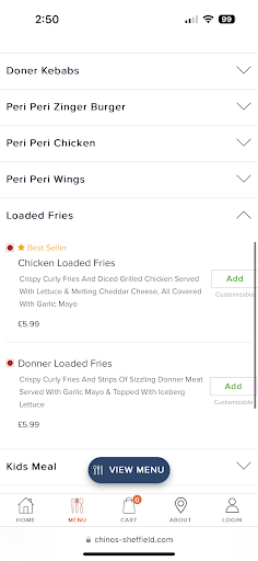 Ā Ā Ā Read moreDisappointed to say the absolute least. Ordered from here quite regularly as I thought the food was good. However the customer service is atrocious- REMEMBER WHO IS KEEPING YOUR SCAMMING BUSINESS RUNNING !!!! Iāve seen a lot of other people complaining about the same thing- never took note of it until today. Ordered 2 meals and a desert and drinks- nothing hard or complicated at all. It comes to 20 minutes past the estimated delivery and i revive a spamming of calls from a number located in Scotland? So obviously why would I pick it up? I was then left an AGGRESSIVE voicemail being told my delivery was here. I had been sat down stairs waiting- didnāt hear a single car on the street and not one in sight- no knock on the door either. I tried ringing back but this was the Uber helpline they called from??? I tried the number on the Uber page- and it didnāt work. Tried the number off google, and it was busy the multiple times I tried calling. Okay then. My order then gets pushed back ANOTHER HOUR so clearly it was NEVER DELIVERED OR ATTEMPTED TO BE DELIVERED. I waited for the next estimated time. 5 minutes passed the estimated time and it was apparently ādeliveredā. Absolutely disgusting service. Stealing money from people- for what? Itās been an hour since then Iāve enjoyed a lovely meal from Pizza place during this time. Cheaper, friendlier service and they actually deliver! Wow! Amazing job chinos! Lost a loyal customer due to your own disgusting arrogance. Hope you enjoy your Ā£16 you...