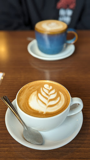 We arrived today around midday to find a lively venue, upon entering we were immediately seated and the experience began. We had already spied the menu outside so we had an idea of what we were getting. Our order was a full English breakfast, a Brunch Bagel with bacon and avo, a flat white and a latte. The coffee came quickly and while not the strongest coffee flavour I've had, it was well rounded and had hints of Coco. Beautiful foam art was found on both drinks, I am a sucker for attention to detail. The breakfasts came shortly after and as you can see from the photos, they were generous in size. I had the full English, boasting 2 rashers of streaky bacon, a large sausage, scrambled egg, hash brown, BBQ baked beans, mushrooms, grilled tomatoes and sourdough. Everything was packed with flavour, from the salty, crispy bacon to the sausage that literally burst in your mouth. The only thing I was unsure of were the BBQ beans as I'm not a massive fan of smokey bean mixes, however I can say that it wasn't overly smokey which made the flavours more subtle and allowed them to work with, not overpower other elements of the breakfast.