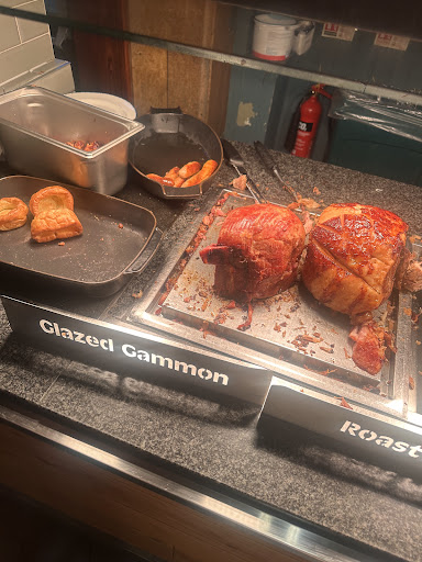 5.7.23... Came in with my partner for a carvery, nice and polite staff, paid extra for all trimmings. The beef gravy, potato and leek mash, Yorkshires and stuffing were very nice, the beef was the best of the meats, the gammon was also nice but a little dry, the turkey was very dry and unable to swallow without the gravy, the pigs in blankets were burnt which was annoying as I'd paid extra for these, roasties were old and dry, I was told more was coming out but had about 15 mins to wait for these, I ended up having a few old ones and after finishing my dinner I went back up for fresh ones which still took another few minutes of waiting to come out, didn't try the peas because they were dry and shrivelled up. I think less but more frequently food...