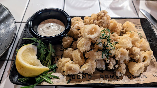 Read moreI am genuinely excited to receive a response to this review - whoever's been tasked with replying to the negative customer ratings has the flair of a heavily-biased fifteen-year-old smashing out bilious retorts to a 2010 Tweet criticizing their favourite B-lister. And now, on to my thoughts. We had heard great things about Domo, hence the choice for our joint-birthday venture. The serving staff were absolutely courteous, but rarely have I seen a team of people who looked as desperate to walk straight out the door mid-shift than this lot. I felt as though they might beg to exchange places with us at any moment, thrusting their aprons towards us with a desperate glint in their eye - instinctively I placed a kindly and watchful hand over my cutlery every time one of them drifted near. 2/5. The atmosphere was not unpleasant - somewhere between a decent Weatherspoons and your local Italian (and I frequent Spoons now and then, so that's not the snobby response you might assume). Basically, it had the air of a higher-end chain. Not the authenticity we had expected, but not a bad vibe. 3/5 Last but not least: the food. My partner ordered a Margherita and the house pale ale, and reported both to be delicious at the price. I ordered sashimi tuna in carasau crumb with mango mayo. The impressive technical skill required to produce what arrived in front of me was inversely proportionate to the justice the dish did to its composite parts, and indeed to the country from which it allegedly hailed - including the addition of some viciously sacarin tapioca pearls. A lightly seared steak, with a fresh mango salsa verde and some butter-roasted crushed new potatoes would have championed both the ingredients, and the spirit of the restaurant itself - 'Home'. Which is where we retreated less than an hour after our arrival, leaving with our hearts and alas our palates, quite...