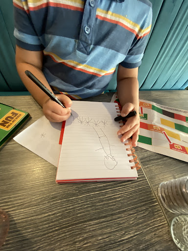 The owner hands out stick on moustaches and politely chats to all the customers in the resturant. My 4 year old instantly took a shining to him and drew him a picture, the owner was so proud and displayed it in his kitchen for everyone to see.