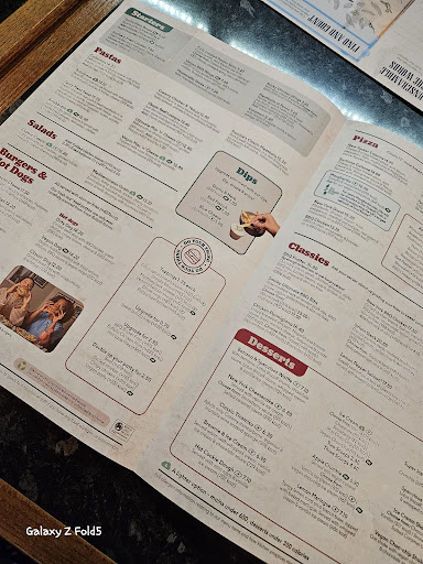 We struggled to decide what to eat (sorry to the waitress who came 3 times to take our order as we took so long) so ordered multiple dishes to share. All the food was hot and served in good time. Nice crispy french fries. The chicken parmigiana was huge and served with both a good portion of spaghetti and fries. Very tasty and a good coating of breadcrumb with just the right amount of sauce. Really enjoyed the bacon potato skins and sour cream. My daughter had a burger which looked very nice, it totally defeated her though as it was pretty big. I was honestly amazed at the quality of the food and how different this experience was to other branches.