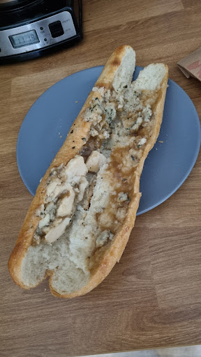Read moreOver priced and poor food. I've just bought a chicken and stuffing hot baguette from here. £4.15 and that's not even with a drink included! I got home and found that there was only 5 tiny pieces of chicken inside the sandwich! They were thin slithers too and when spread out evenly they were barely even noticeable. I know there's a cost of living crisis but £4.15 for this is daylight robbery. All I could taste was bread. I should've gone to Tesco for a meal deal instead. I don't usually eat from Greggs anyway and on this experience I won't be going back. At least the staff were friendly and potato wedges were tasty, hence the 2 stars...