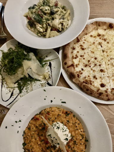 I was looking forward to trying this place and can say the first visit will be the last. We waited nearly 40 minutes for our first drink to arrive after being plonked on the worst table and just forgotten about. Other customers came in, were served there food and drinks whilst we waited. If I didn’t go in and physically ask for our drinks; heaven knows how much longer it would have taken. We were then told our starters would be 5 minutes late (scallops, flash in the pan?) we waited 25 minutes for that. We are now talking an hour and half into the sitting and to make it just that extra bit frustrating, the scallops were freezing! We were offered 2 drinks on the house and were made to feel this was a huge offering as a way of an apology for our wait. The mains were drenched in sauce to the point it was impossible to lift the pasta off the plate and cheers for the 3 prawns in my prawn linguine. I don’t blame the poor college students you have as a chefs that look overwhelmed for that though. The side of chips was the best thing about the food.