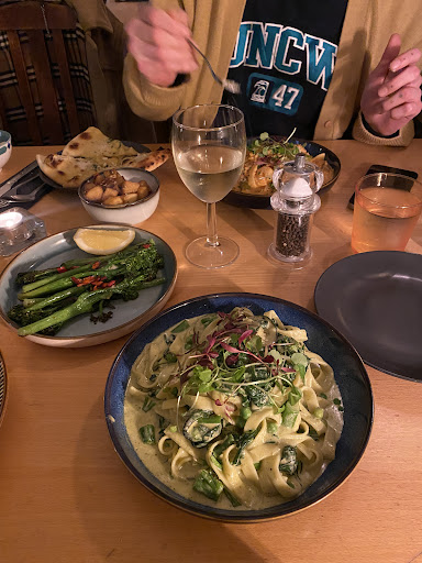 The bruschetta was really flavourful. My partner had the mixed Italian bread starter and the flavoured butters with that were absolutely divine! Both the mains were super filling and wonderfully cooked. I had the Salmon and shrimp tagliatelle and they did not scrimp on the salmon or prawns which I was delighted with! We were absolutely stuffed by the time we left!