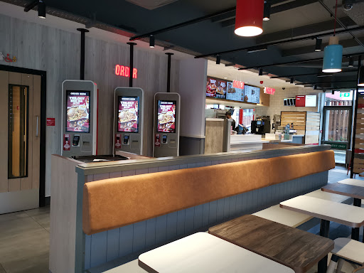 As with many of the reviews, the three stars are due to the staff and the waiting time. I haven't been to a KFC for many years due to being a vegetarian, but I heard rave reviews about the vegan burger and thought I'd give it a try. The store seems fairly new and fresh inside, which is an expectation in today's world. Upon entering the store, it was almost empty and I proceeded to the self-serve screen. A member of staff told me not to use them as they're broken (which was quite clearly a lie, as a customer came in later and used it). When going to the till to be served by the aforementioned member of staff, I asked for the vegan burger to which I was immediately met with ridicule! Apparently, the vegan burger will never catch on and I should be eating meat. The reasons I don't eat meat are nothing to do with other people, I don't think it's appropriate to be saying such things to your customers. Once the staff member had finished their lecture on how bad vegan/vegetarian food is for everyone, they started to complain that the self-service machines are taking away their jobs. Never have I met such an openly narrow-minded human being!