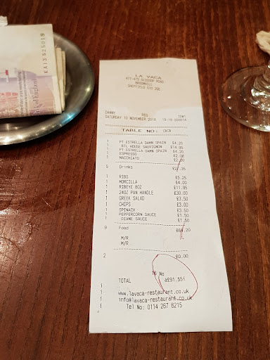 Read moreLocated in studenty Broomhill, La Vaca has carved out a comfortable niche for itself turning out a wide range of steaks from high quality Yorkshire cattle. Slightly beyond the regular student budget, this week it's a popular venue for post graduation family meals, and rightly so. Friendly staff had our large table ready and were attentive without being 'in your face' from the minute we started to arrive. It was no bother to them that our group convened our the space of 30 minutes. Everyone got drinks and refills when they needed them.