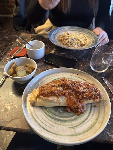 I really wanted to like this place more as the atmosphere is really nice, and the staff are friendly, however it was disappointing. There were a few of us so I got to try a fair number of dishes. The starters were mixed. The scallops, prawns and mussels tasted lovely, but the prawns were over cooked and rubbery, but this could be a wonderful dish of cooked better. The meatballs were tasty, no complaints. The halloumi starter was really dry and the sauce was almost non existent. The calimari was very average. The mains were the most disappointing, tbh, we all know that pasta is cheap, therefore to charge about £13 per plate, the sauce needs to be banging, and it wasn't, not on any dish, the most bandied about word was"bland", it was all a bit Meh. The pizza was really bad for tastelessness - we left a lot of it. The desserts, not everyone had them, were all ok, they all seemed again, very average. The house wine was very acceptable. The staff were very attentive. This place could be absolutely wonderful, most of the staff and the owner/manager all seemed to be Italian, so why was the Italian food so poor? It wasn't cheap either, so my advice is to sort your sauces out, be bold with flavours and don't be stingy with the amount of sauce. I make much better pasta dishes, and I'm no chef. Such a shame as the place itself has a lovely atmosphere, but I won't be spending money here...