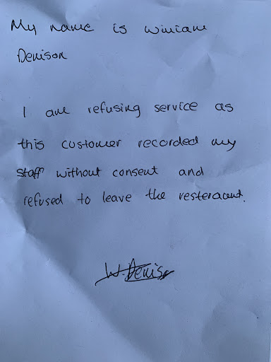 Read moreAround 1PM, early afternoon, me and my dad went to buy food from McDonaldâs. We ordered 2 triple cheese burgers and a box of salad with grilled chicken. As soon as we had received our order. They didnât give my dad salad cream and fork to eat the food as I already ate my food as we arrived on site because my dad had to stop at site so i can eat the food then to join my dad at site. When my dad came, he entered the van and viewed his food, he was concerned because he had been always expecting salad cream and fork, we went straight to work as it lasted us 2hrs of hard work to do because my dad was really busy so he didnât have time to return and refund the food. We finished our job and arrived at McDonaldâs at 5PM in the afternoon, my dad went to complain about the salad because it had no fork and no sauce and we ordered large fries and inside was medium, the salad was un fresh so my dad couldnât eat it as he hadnât eaten in a whole 3hours, the manager came and had refused to give us a refund. I was recording the whole thing for proof. She started getting loud at my dad and then with all frustration she shut the window with force. I saw a guy calling the police on the 3rd window as the police came they had told my dad to go inside and complain, because they may not know what the policies are in McDonaldâs. They also told us that they needed to check my dads van I donât know why they said that because we are black and they might think the worst about us. We entered the McDonaldâs building and complained to a guy named William Denison. He had refused service because a black man Also known as my dad followed the rules as he only wanted to refund the food because it was un fresh and it didnât come with what is was suppose to come with, and he had also been threatening my dad by calling the police. He had also written a note about all the things he thought we might have done totally hiding the things what they have done also known as threatening my dad by calling the police. Hereâs proof even though this ISNT necessarily TRUE, because she got rude then I recorded the manager for proof, because why canât I? There are security cameras everywhere recording people without consent this is me recording her without consent. So I have the right to record, because what they are doing isnât right. We were being racially threatened because they called the police on my dad twice. We left the shop without receiving any refund not helpful people they are racist.