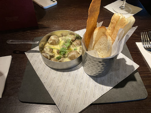 10 mins later the server brought our side of mushrooms and we ordered a bottle of wine and a lager for the table. No apology was given for their error. The server brought over the drinks and just left the bottle of wine by the table, they didn’t even open the bottle let alone offer to pour it.