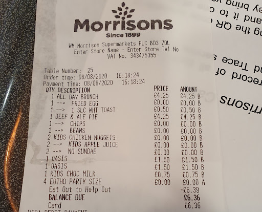 Read moreIt's been a long time since I've used a cafe in Morrisons. I had to ask for a menu, but that day, they had not had a sandwich delivery, and they'd got no chips !! So the choice was very limited. So the lovely lunch we were expecting turned out to be a bacon butty, and to be honest, that wasn't the best. Overall, it was a very...