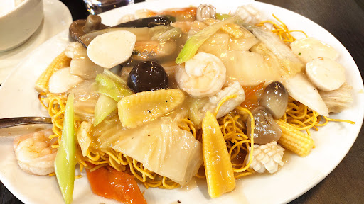 We had seafood crispy noodle, wonton noodle soup with udon, and black bean beef ho fun. All three dishes were good. The seafood noodles were crispy and delicious, the black bean ho fun had a just-right touch of saltiness, and the wontons were fat and juicy.