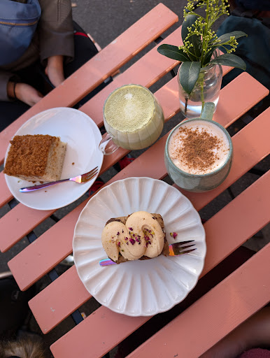 My second visit was unfortunately less satisfactory. Although the beverages and cake were served in the appropriate crockery while we were seated outside, the cakes were excessively dense, overly sweet, and almost sickening, making them impossible to finish. There were two staff members at the adjacent table who began taking photos of their Christmas drinks. This process took a loooooong time, resulting in an awkward atmosphere as we were frequently interrupted by their movements and them taking photos around us, trying to move out of their shots. Their lack of friendliness and consideration for our experience added to the discomfort, and despite expecting their photo session to conclude quickly, it persisted for over 20 minutes.
