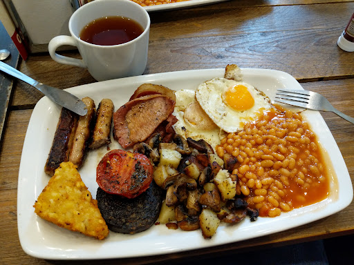 Read moreFabulous! Having completed a 26 mile charity hike the day before we woke up in need of a substantial breakfast to replace all the calories we lost. And Porky's didn't disappoint. Now I'll just add, and no disrespect to the owners, but you don't come here for fine dining. We had a small and large breakfast between us, both come with a hot drink included, at the amazingly good value price of £6.95 (small) and £9.95 (large). Literally the works on a plate including amazing hash browns, black pudding, beans, bacon, sausages, eggs, toast and tomatoes. Phew! The food was nicely cooked, not at all greasy, and served with a smile from the very friendly staff. We won't be coming every day, not least because I live in Northamptonshire, but it'll certainly be a breakfast of choice when I visit my daughter in...