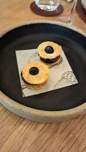 The meal begins with three taster snacks, including a delicious chawanmushi. Followed by their black treacle bread & hendo's butter. Up next follows a procession of delightful dishes. Starting with the Chalk stream trout tart. Then, you are given a little scroll explaining how the dish inspired the chef. Cauli cheese,not like Grandma B's. The fish course was a lovely dish of Cornish Cod,trout roe, seaweed & leek. The last of the savoury courses was a very tender, Creedy Carver Duck that cut like butter. There were two very pretty and tasty desserts of Yorkshire Rhubarb and the other 'Jaffa cake' with a nice gooey centre. To finish the meal were a couple of sweet treats. The whole evening flowed seamlessly,from the front of house to the chefs in the kitchen it was an absolutely...