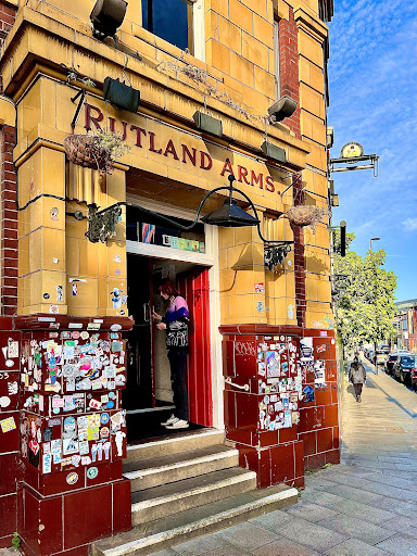 I'm probably biased because this place is my local, but if it wasn't so great then I wouldn't keep coming back!! The choice of drinks is excellent. 8 hand pulls with an ever changing selection of local ales, stouts and ciders, several continental lagers of varying strengths, plus the usual bottles and spirits. The interior is just as varied. A quirky muddle of tables and on the walls a rotation of artwork from local photographers, cartoonists and artists. The team behind the bar have perfected their 'craic' and it's some of the best in the business. (As long as you don't put Meat Loaf on the jukebox!!). And a little sun-trap of a beer garden with room for over 9000 people on a sunny Friday evening. But it's the boys in the kitchen that make this place so special. If you have a fondness for meat, cheese, or meat with cheese then you need to see this menu. Their very own Rutland Burger is head and shoulders above anywhere else that serves burgers. The deep fried battered Halloumi burger is enough to turn me veggie, so I usually add bacon just in case. The 'cheese' burger is a molten three-cheese flavour sensation and I'm not sure if the runny scotch egg (yes, I did just say runny scotch egg!) is the work of science or witchcraft. Either way it's mighty tasty. And I haven't even mentioned the specials board yet... Which is always special, to say the least. Then there are the experimental combos that have become regular favourites at The Rutland. The bhaji chip butty, served with spicy curry sauce and onion bhajis in a chapati and the jerk chicken risotto to name but two. Befriend them on Faceybook or experience the banter now @RutlandArms on that there Twitter. Go there!...