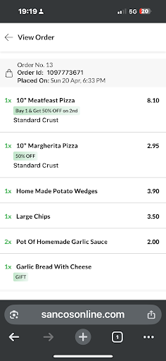 Read moreOrdered over £20 didn't come with everything I ordered so rang back and person on phone didn't know how I ordered food as he ways asking online by different sites or phone but my number is saved on their system. Once my missing items did come they didn't turn out to be what I was gonna get. Sancos have changed the kebabs so my kabab came in a big silver tray with chips and a nan bread just thrown on top. On the paper menu it didnt say it can with chips or in a tray. But now I know they changed the men as I've only received the new menu with my delivery. I won't be ordering any kind of kebab food rn...