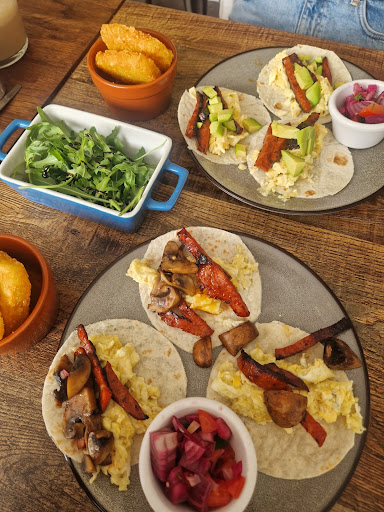 We both ordered the ābuild your own breakfast tacosā with a side of hash browns. We also both had the chorizo on them which added a perfect Spanish twist to the brunch. It was all delicious and perfectly cooked!