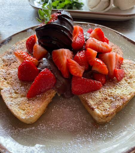 Nutella Strawberry Heaven on French Toast (ÂŁ9.95) â an absolute chocoholicâs heaven. So warming an delightful.