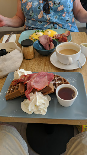 I think I give honest and fair reviews. This lovely venue is more than a cafe. It has a relaxed atmosphere, terrific decor and very attentive staff. There is a varied menu and they make as much of the food as they are able. There are many considerations for dietary needs. The coffees were really nice too. So why only four stars? It is not particularly cheap and the food was warm rather than hot. I suppose you get used to that in many other parts of Europe and maybe I should make an allowance for this. Please do try as you will not be disappointed. I had waffle, bacon and maple syrup. It may not be everyone's choice but I enjoyed it all and it was more than enough for an early lunch. It was also beautifully presented. I shall be going back as it is a nice treat. The staff make this place. Everything is done with a smile. You feel welcomed, almost like visiting a friend. Everything is, indeed, done with a...