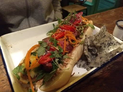 The new food is absolutely incredible: dumplings, cauliflower wings, a beautiful steamed dumpling and brilliant slaw. I was persuaded to order the bang bang tofu and I have to say I'll never hesitate over it again, absolutely top notch.