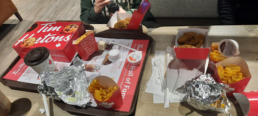 Read moreWhat can I say, we had the big breakfast wrap, which at £3.49 wasn't a bad price... But you can 'upgrade' this to a breakfast meal which includes a small drink and a hash brown for only £2.99, which is brilliant. Of course we upgraded and chose a large drink which was £1extra, but omg, the drink is huge, we had a latte and a mocha, and they were both very hot and very nice, the big breakfast wrap is delicious, and definitely fills a gap. The hash brown was hot and crispy, perfect. At last we can get a very nice breakfast wrap at an excellent price, Mcdonalds have lost out here they shouldn't have stopped doing their breakfast wraps, but I have to say Tim Hortons wraps are definitely nicer. We also(well you just have to) sampled a donut, namely the strawberry cheesecake one and the caramel maple fudge, both were very tasty but very naughty. We've not tried a burger yet but it's on the to do list, if they're as good as the breakfast stuff then we'll be in for a treat. Well done Tim Hortons you've gained 2 more devotees here. Another visit to Tim's, this time we had a chicken sandwich, a festive donut and a gingerbread latte and a normal latte, the chicken was to die for very tasty and very hot, with fresh lettuce a hash brown and burger sauce, omg. The gingerbread latte was perfect with just the right amount of gingerbread flavour, the other latte was as usual spot on, we both had the Xmas tree donut, which was very soft and fluffy with green icing and sprinkles on top and chocolatey 'goo' inside, very nice. Well done again...