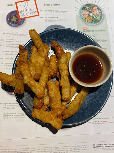Seems like Wagamama has updated menu for more upmarket experience but no basic training for staff. It is actually really annoying when they have this surface level of customer care which is scribbling all over your menu to point out a QR code and the waitress name if they can’t even do basic service…