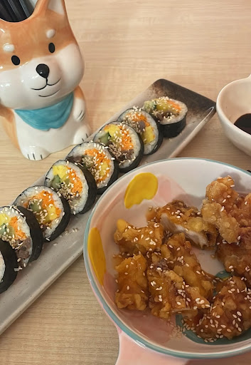Read moreWe heard online that this place was new so me and my partner decided to try it out. When we first went in, the cashier answered our question of how to order. We sat at a table and started looking on their menu. Ordered the Chicken Terayaki Don (rice bowl), salmon sushi set, veggie roll, chicken dumplings and the miso soup. The food came out one by one and it came out at a right pace between each dish. I enjoyed the salmon sushi set and my partner enjoyed the veggie roll. The rice in the sushi and rice bowl were the right texture and gosh, the rice was enjoyable! the chicken dumplings were flavourful as well. The miso soup and chicken in the rice bowl were a bit tasteless, and the texture of the chicken was different to what we were expecting. The staff were helpful and friendly. The setting of the restaurant was very cute and relaxing. They had cute tableware and cute details like crocheted flowers in vases. The wall bench had comfy cushions to sit on, and the kitchen looked clean from the small peaks we had.
