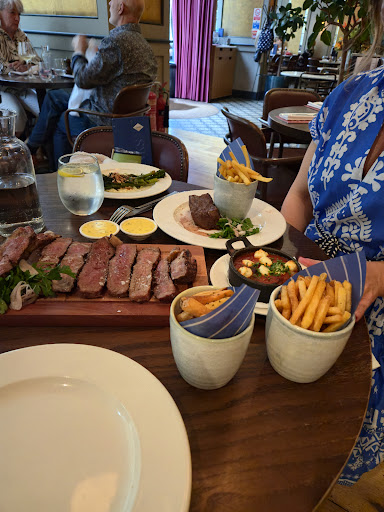 Ordered the Côte de Boeuf (a steal at nearly £70 for 2) and was pretty gobsmacked when a male member of (unkempt, beard, incredibly rude) staff tried to serve us two minute steaks chopped up on a plate next to each other, clearly intended to look like a Côte de boeuf, which was idiotic in itself as it was missing the bone and less than half the size!