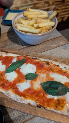 Food opinion Giving benefit of doubt because newly opened, the kitchen staff might need to up their game to execute a good presentation. The caprese was underwhelming. Half a plate of stacked toasted bread was a surprise. 'Crostini' can apparently mean many things, as can apparently 'paprika coulis'. It would have been better to focus on the core ingredients rather than faff, but that's for the kitchen and management to decide. The pizza was in fairness of decent flavour and had a good consistency. The size however was a childrens size pizza. The ratio crust to overall pizza size was significant, so despite tasting good it was a short lived experience.