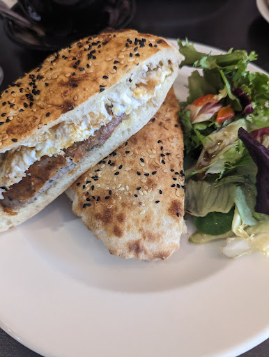 I ordered a sausage and egg sandwich with a latte, while my partner opted for falafel/hummus and a cappuccino. The coffee is fairly authentic so the latte is fairly milky, but the cappuccino looked great/foamy. However this is just personal preference and they still tasted perfectly fine.