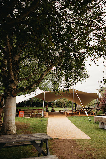We had the tent arranged for our guests in benches, and a floral arrangements at the end for decoration, this worked really well. We stuck outside (lucky with the weather) for post wedding drinks, and this made a great background for photos afterwards. There was also the little cocktail truck there for pre drinks for early guests or those wanting something else to drink.